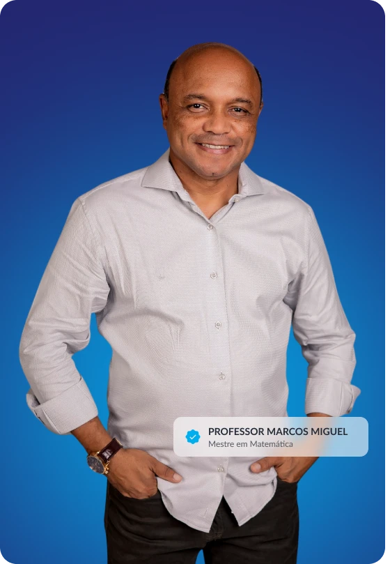 Marcos Miguel é professor de Matemática, unindo base acadêmica sólida e experiência prática em concursos para preparar candidatos com foco em resultado.